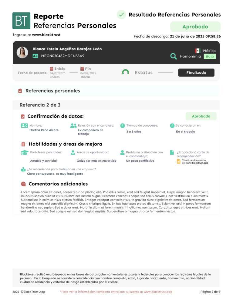 Referencias Personales en BlackTrust.app es un nuevo microservicio, con el que nuestros clientes podrán conocer lo que dice el círculo más cercano de su candidato/a sobre sus habilidades, comportamiento, ética y valores.