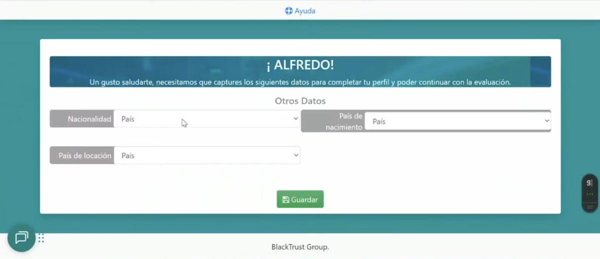 El registro solo se enviará a BlackTrust.app una vez que el candidato haya completado estos campos demográficos.